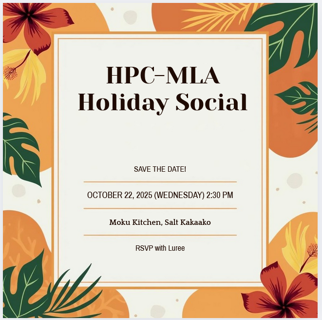 Please join us as we welcome Pumpkin Spice season and the upcoming holidays! We are gathering for happy hour this year! Even if you do not plan on cocktails, small plates are half off and pizzas only $12!